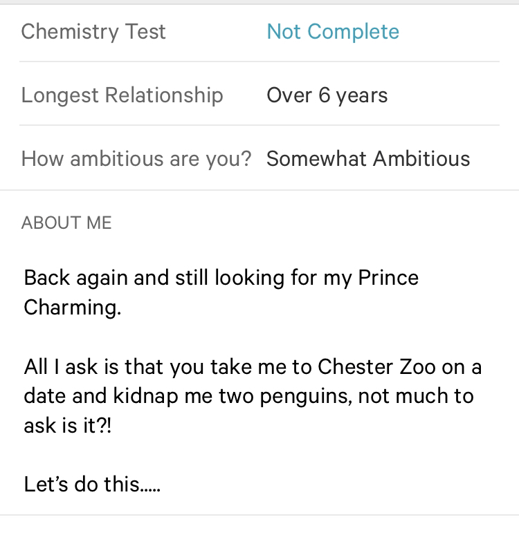 In this instance my message didn’t get opened. I could of said anything, I could of had my own Zoo with my own Penguins and she will never know, this, is a metaphor for what online dating is.